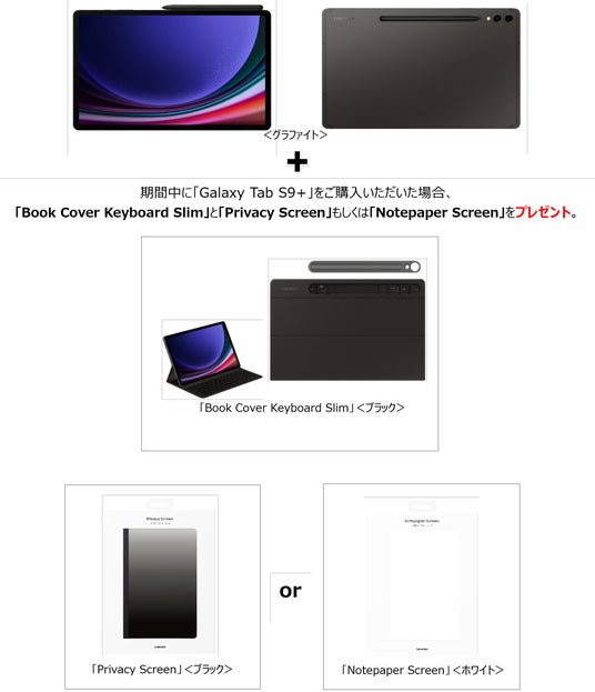 ※「Galaxy Tab S9+」をカートに追加いただくと、自動で10%割引価格が表示されます。その後、「Privacy Screen」または「Notepaper Screen」をお選びください。