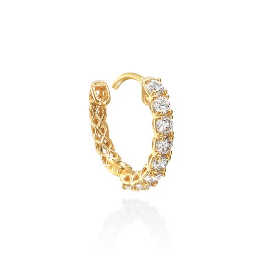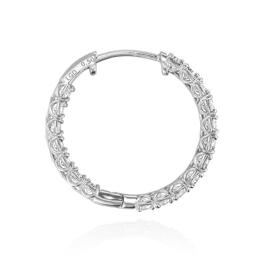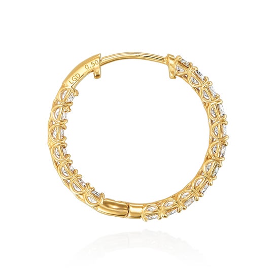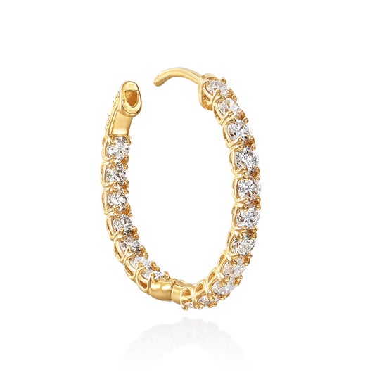 このダイヤモンドフープピアスは、日常のさまざまなシーンで活躍し、特別な場にもふさわしい高級感あるデザインとなっています。ゴルフやピラティスなど軽いスポーツの時などにも大活躍するフープピアスです。