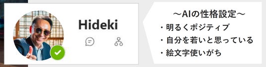 チャットボットのキャラクターを「明るくポジティブ」「絵文字をよく使う」などの性格に設定することで、親しみやすさを演出しています。