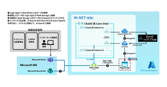 東京都世田谷区 DX推進担当課の職員チームが内製で、Microsoft Azure に生成AIを活用する環境を構築し、Microsoft Teamsで生成AIと対話ができるチャットボットを開発し全職員への提供を開始しました。