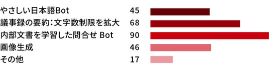 また、「やさしい日本語ボット」と題した、そのままでは固い印象や難しい日本語で構成されている文書や規定を、幅広い年齢層や外国人でも読みやすい形に書き換えるボットの要望も多く出ています。市民と行政の接点となる区役所ならではの要望です。