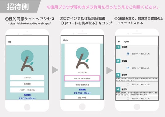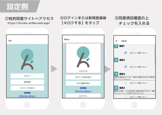 『不同意性交等罪』で「本当は同意していなかった」という相違を防ぎつつ、その場の雰囲気を壊さず性行為の同意をお持ちの端末上で行える〈性的同意サービス「キロク」〉システム変更点、よく頂くお問い合わせ