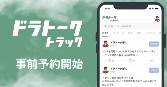 株式会社canuu(東京都中央区、代表者:永井新、濱田崇裕、以下「カヌー」)はトラックドライバーのためのSNS「ドラトーク トラック」の事前予約を開始したことをお知らせします。
