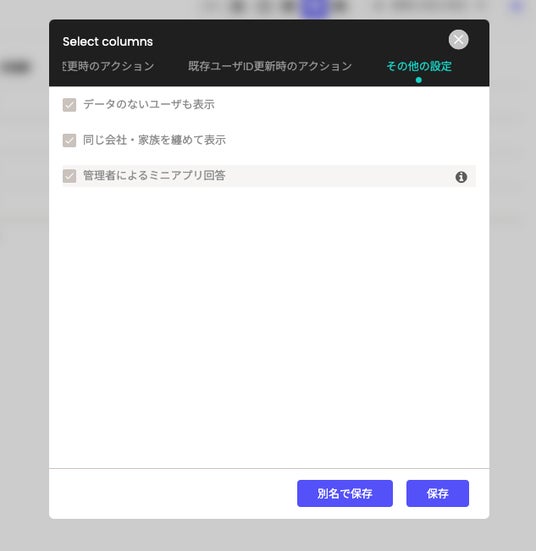 【エボラニ株式会社】ユーザー情報の代理入力方法ユーザ>「標準項目設定」>「その他」「管理者によるミニアプリ回答」にチェックを入れます。