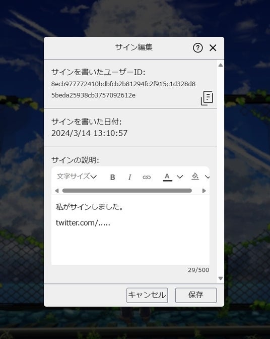 この機能を利用することで、確かに自分がサインをしたコンテンツであるということをより強力に担保することが可能です。