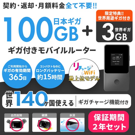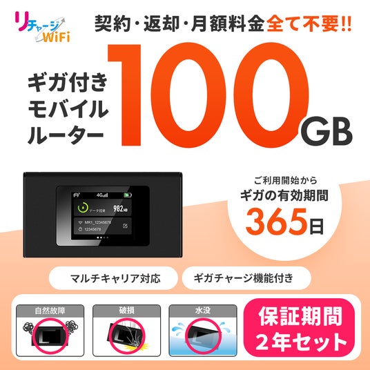 ・[リチャージケア付き]リチャージWiFi 国内100ギガ付きモデル 2年保証【MR1】