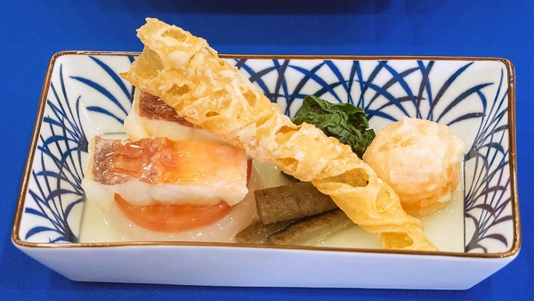 取材中、筆者もいくつかのメニューを試食させてもらいました。和食の優勝レシピで使われていた赤矢柄の焼き物は、 餡掛けということもあり口に入れたときの食感も良く 確かに魚の旨味が凝縮されている感じで、日本酒と合いそうです。