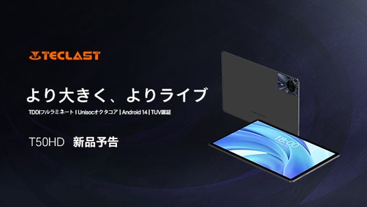 【新品予告】Teclast 2024年最初の新商品「T50HD」すぐ登場します!Android 14/14GB+256GB/8000mAh/TUV認証。最新製品の魅力をご期待ください!