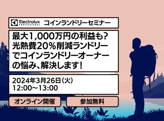 【無料ウェビナー】【最大1,000万円の利益も?】光熱費20%削減ランドリーでコインランドリーオーナーの悩み、解決します!を3月26日に開催