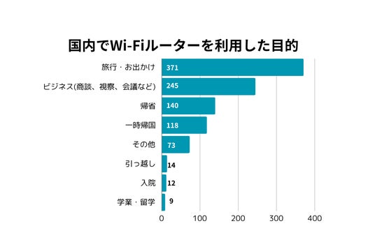 ・国内におけるWi-Fiルーター利用目的は、1位が「旅行・おでかけ」、2位が「ビジネス」、3位が「帰省」。