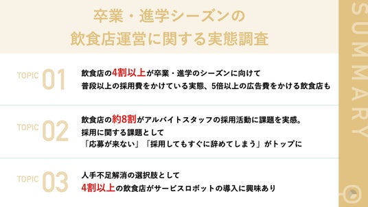 飲食店の4割以上が卒業・進学のシーズンに向けて普段以上の採用費をかけている実態、5倍以上の広告費をかける飲食店も
