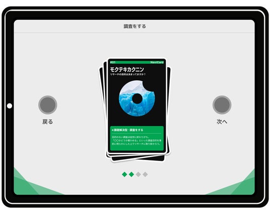 また、サブコンテンツでは、生徒が伸び伸びと探究を進めるための道標として、探究で役に立つスキルセットを可視化したWebカードを掲載しています。