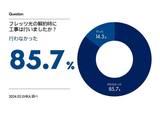 フレッツ光の解約時に工事を行った家庭は14.3%であり、85%を超える大多数は工事を行わなかったことが分かりました。