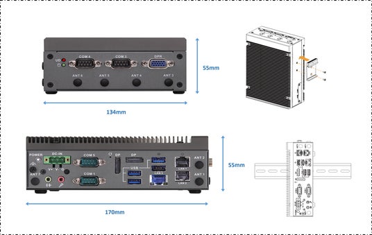 また、産業用途にフォーカスして、RS232C/485/422などのシリアルポート・入出力4チャンネルのDI/Oポート・PoE LANポートオプションなど、豊富なI/Oを装備。電源入力もDC 9~36V対応のWide Voltageに対応、動作温度も-20~70℃と過酷な産業用途での稼働に強みを発揮いたします。
