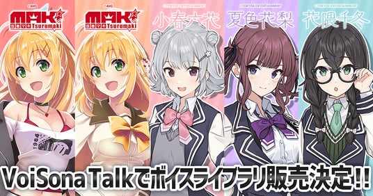 株式会社AHS(東京都台東区、代表取締役 兼 CTO:フア カンル)は、株式会社テクノスピーチが開発するAI音声合成ソフト『VoiSona Talk』に、AHSキャラクター「弦巻マキ」TOKYO6 ENTERTAINMENTキャラクター「小春六花」「夏色花梨」「花隈千冬」が登場することをお知らせ致します。