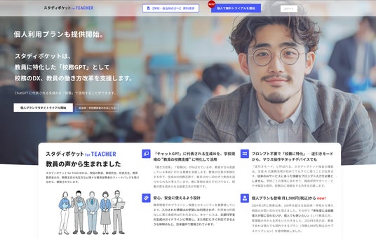 教員の負担軽減、校務DXを実現する生成AIクラウド「スタディポケット for TEACHER」が、"個人利用プラン"を提供開始。月額1,980円(税込)で GPT-4 を使い放題。無料でトライアル可能
