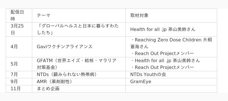 今回のテーマ「グローバルヘルス」は、新型コロナウイルスによって公衆衛生の重要性と不在による脅威が明確に認知された政策領域です。番組を通じ、一人でも多くの方にグローバルヘルスの重要性、必要性について知っていただくきっかけになればと考えています。