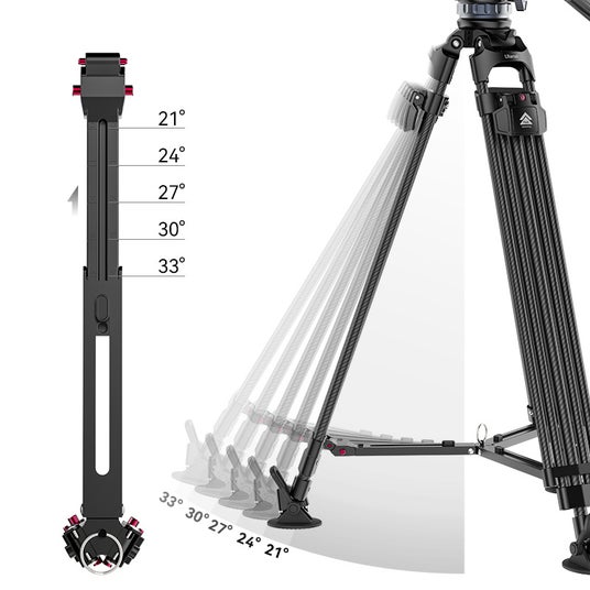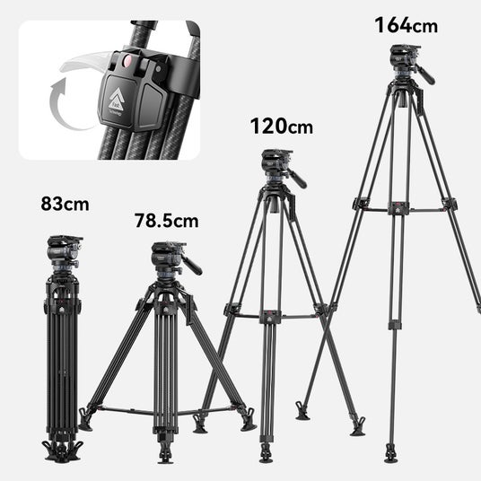 VideoFast Heavy Duty三脚は、5段階のチューブ設計を採用し、太くて幅広い脚のジョイント、切り替え可能な馬蹄型とスパイク型の足を備え、風に対する抵抗力があり、さまざまな撮影条件で比類のない安定性を確保しています。