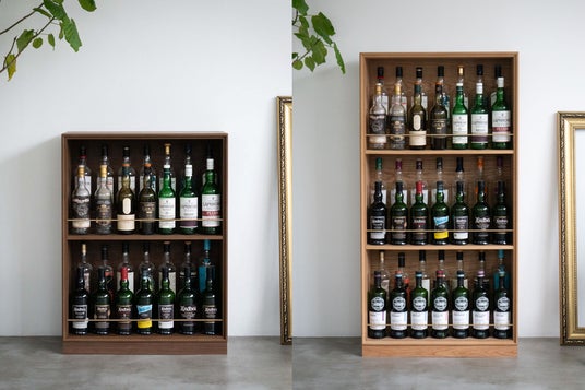 これまで自宅用や飲食店に多くのボトル収納棚を製作してきたPYTHAGORAが、自宅用のボトル専用棚「バーシェルフ」を2種新しく発表。一見シンプルに見えるこのバーシェルフには専用棚としての機能が搭載されています。