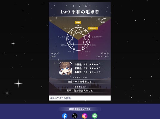 さらに、「トライタイプ」という、自分の内なる性質まで診断します。判定されたエニアグラムタイプを使って、自分らしい過ごし方や、自分のストレスのサインなど、日常に応用できるさまざまな分析をお届けします。