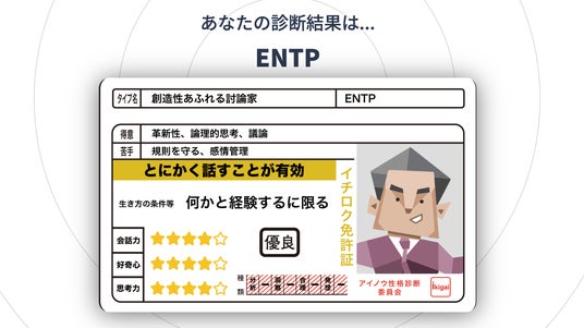 16タイプの初心者の方にも分かりやすいよう、免許証のデザインで登場し、16タイプの学術的な要素も入れ込んだ診断になりました。