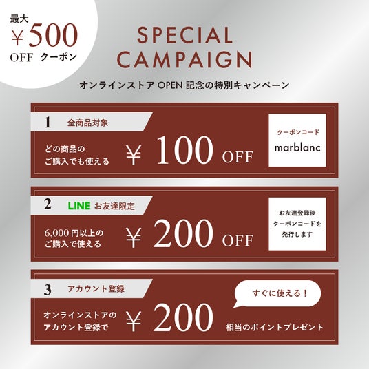 また、オープンを記念し、購入金額から最大500円OFFとなるお得なキャンペーンを実施いたします。