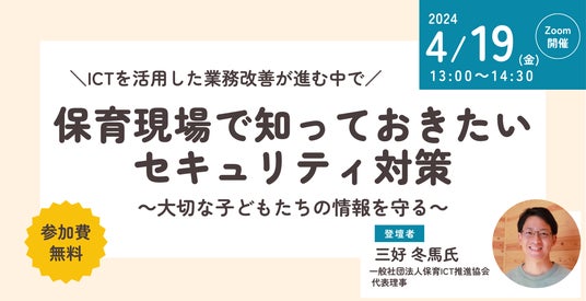 保育現場では大切な子どもたちの情報を扱うため、情報のセキュリティ対策に不安を抱えている保育士も多いと思います。本セミナーでは、一般社団法人保育ICT推進協会 代表理事 三好 冬馬氏にご登壇いただき、園で知っておきたいセキュリティ対策についてお話をしていただきます。