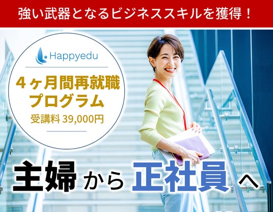 再就職プログラムに関するページ:https://www.happyedu.jp/17077246249214
