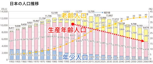 現在、日本の生産年齢人口は急速に減少しており、2060年には2000年の約半分になると予想されています。未就学児を育てる女性の28%を占める専業主婦が正社員になることは、日本の労働力不足の解消の一助となります。