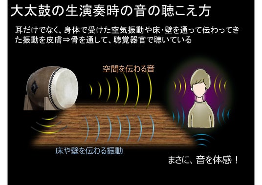 fuiigoは音楽の生演奏などを聴く場合、耳から聴くだけでなく、空気中や壁や床を伝わってくる音を、筋肉や骨を通して聴いたり感じたりしていることに着目しました。