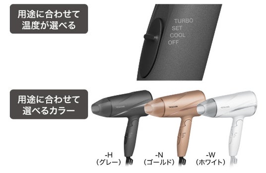 毎日行うヘアドライだからこそ、すばやく髪を乾かせるパワフルな風と、軽くて使いやすいシンプルな操作性は、ヘアドライヤーを選ぶ際に欠かせない大切なポイント。そんな多くのお客様のニーズに応える機能性はそのままに、テスコム自慢のプロテクトイオンを搭載しワンランク上の美髪へと導く「プロテクトイオン ヘアドライヤー TD360A」を発売いたします。