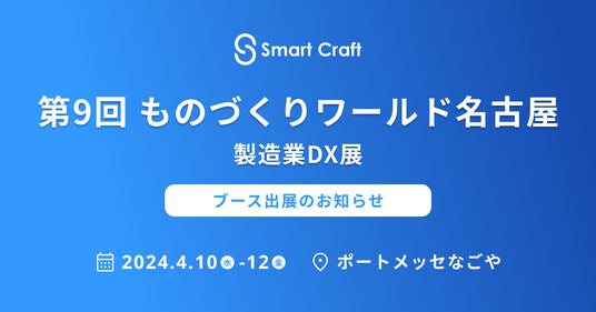 株式会社Smart Craft(本社:東京都渋谷区、代表取締役 浮部史也、以下Smart Craft)は、2024年4月10日(水)~4月12日(金)にポートメッセなごやで開催される「第9回ものづくりワールド名古屋 製造業DX展」に出展します。