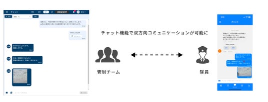 KOMAINU上で管理側Webシステムと隊員アプリでチャットをすることができます。
