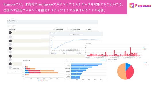 AIツール「Pegasus」は、インサイトマーケティングツール&MAツールとして、クラウド上でインサイトデータを管理し、フォロワー属性や投稿データの分析が簡便に行えます。その他、コメント自動返信、拡散施策の自動化、抽選機能、お問い合わせの自動化、アンケート、クーポンの配布、商品リコメンドなど、多岐にわたる機能を備え、カスタマーサポートの効率化やリスト獲得に寄与しています。