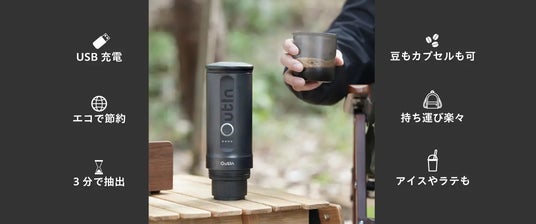 キャンプや山登り、バイクや車など、外出先でこだわった美味しいコーヒーが飲みたい。でも、手間はかけたくない。そんな方のために「冷水3分で簡単にプロの味」を実現できるOutin Nano。