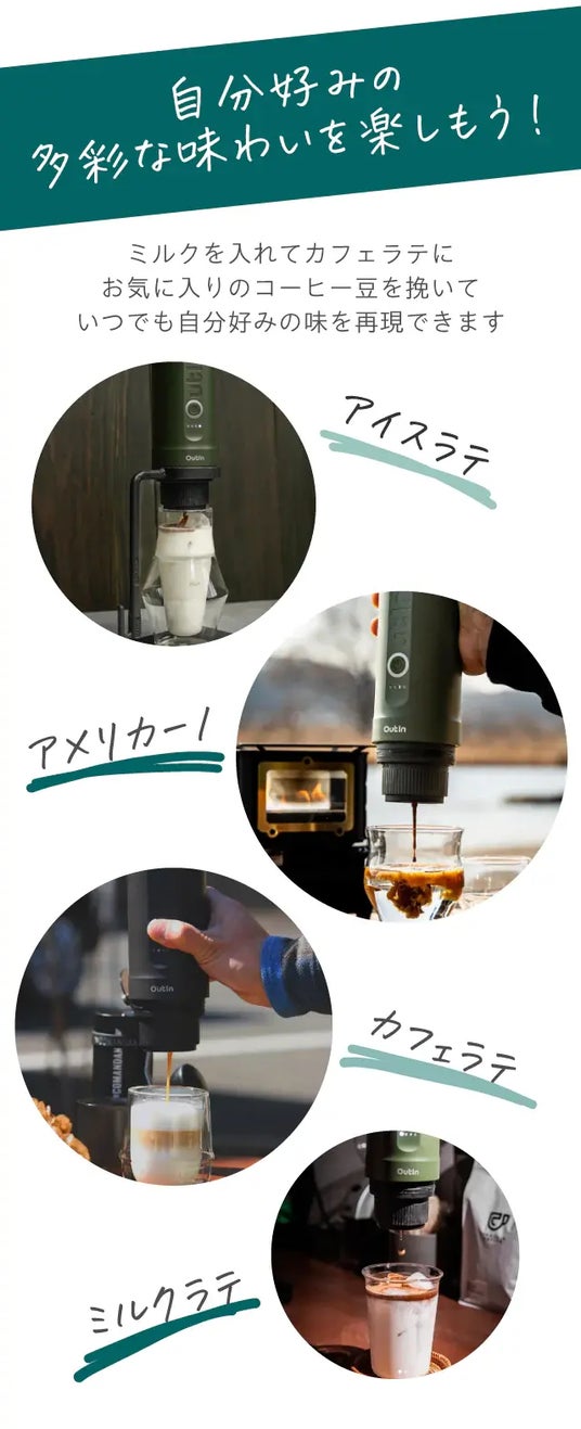 外出先やキャンプなどのアウトドアシーンで、手軽に本格的なバリスタの味を出せます。