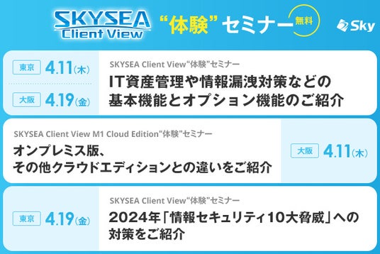 「SKYSEA Client View」 4月開催ハンズオンセミナー(東京・大阪)