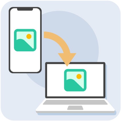 パソコンとスマホが同一のLANやWi-Fi環境で接続されていれば、スマホから送りたい画像を開き、本製品の画面上に表示されるQRコードを読取り、タップするだけでパソコンへ直接転送できます。スマホに専用のアプリをインストールする必要もありません。