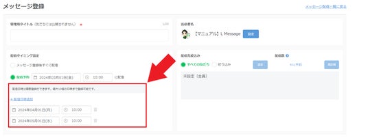 メッセージ配信で、複数の配信日時の登録ができるようになりました。