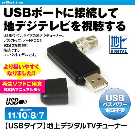 DTV02A-1T-UDTV02A-1T-UUSBドングルタイプの地デジチューナーです。USBメモリと同等サイズのためデスクトップ、ノートPCなどさまざまなタイプに接続できるコンパクトモデル。