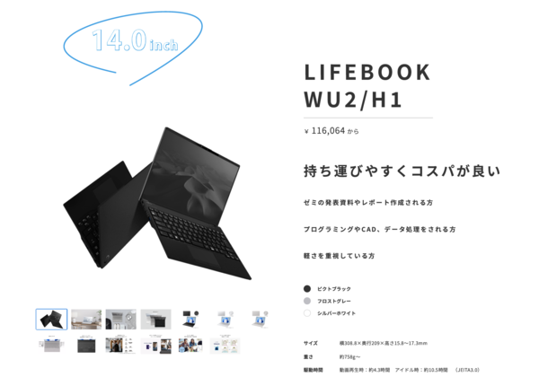 さらに、13.3型ノートPC「LIFEBOOK WC1/H3」、14.0型ノートPC「LIFEBOOK WMB/J1」、14.0型ノートPC「LIFEBOOK WU2/H1」の3モデルについては、値引き金額が2000円アップし、5000円オフの適用を受けられる。