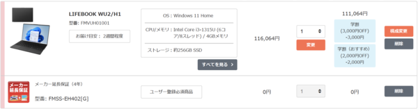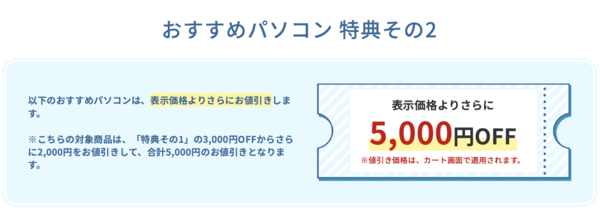 3000円オフと5000円オフ、いずれの値引き額においても、クーポンはカート画面で自動的に適用される。優れた使用感と高い品質に定評がある富士通クライアントコンピューティングのPCをお買い得な価格で購入できるこの機会を、見逃さないようにしよう! 4年保証も無料になるので、この春に進学した学生には特におすすめできるキャンペーンだ!