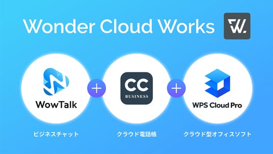 「Wonder Cloud Works」は、法人向けクラウド型オフィスソフト「WPS Cloud Pro」、ビジネスチャット「WowTalk」、クラウド電話帳「CAMCARD BUSINESS」を連携して1IDですべてを管理でき、必要なツールを選んで使えるSaaSプラットフォームです。
