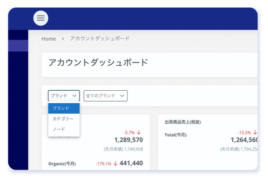 ASINダッシュボード内にて、自社の任意のブランドやサブブランドを登録し、設定したブランド、サブブランドごとに数字の変化を把握することができます。