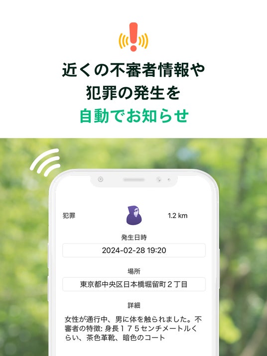 2. 近くで発生した不審者や犯罪の情報が通知される