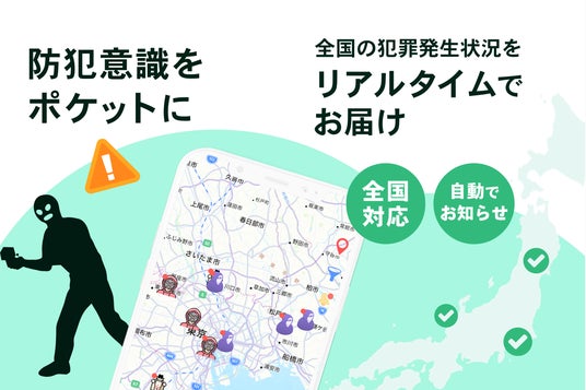 防犯意識をポケットに。全国の犯罪発生状況をリアルタイムでお届け。