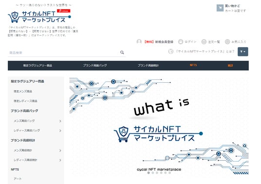 「サイカルNFTマーケットプレイス」とは、マーケットプレイス上で「サイバーNFT」を購入すると、当該商品の「フィジカルNFT」付き商品が、「真贋証明」および「サプライチェーン(トレーサビリティ)」を100%担保した状態でお手元に届くという全く新しい形式のマーケットプレイスです。