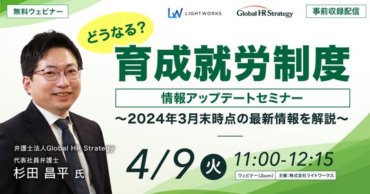 学習管理システム(LMS)や外国人雇用に特化したeラーニングサービス「まなびJAPAN」などを提供する株式会社ライトワークス(本社:東京都千代田区、代表取締役:江口夏郎、以下「ライトワークス」)は、2024年4月9日(火)に、外国人材受け入れの新制度「育成就労」の技能実習法等改正法案(育成就労法法案)について弁護士・杉田 昌平氏が解説する無料ウェビナーを開催いたします。