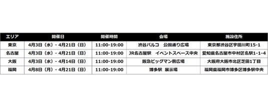 さらに、渋谷・名古屋・梅田・博多の4か所に期間限定で