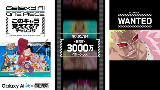 Samsung Japan公式SNSアカウントに「このキャラ覚えてる?チャレンジ」動画を順次公開いたします。Galaxy S24シリーズの新機能「かこって検索」を使ってTVアニメ『ONE PIECE』のキャラクター名を検索し、「ウェブアシスト」機能でキャラクターエピソードを簡単に要約する内容となっております。